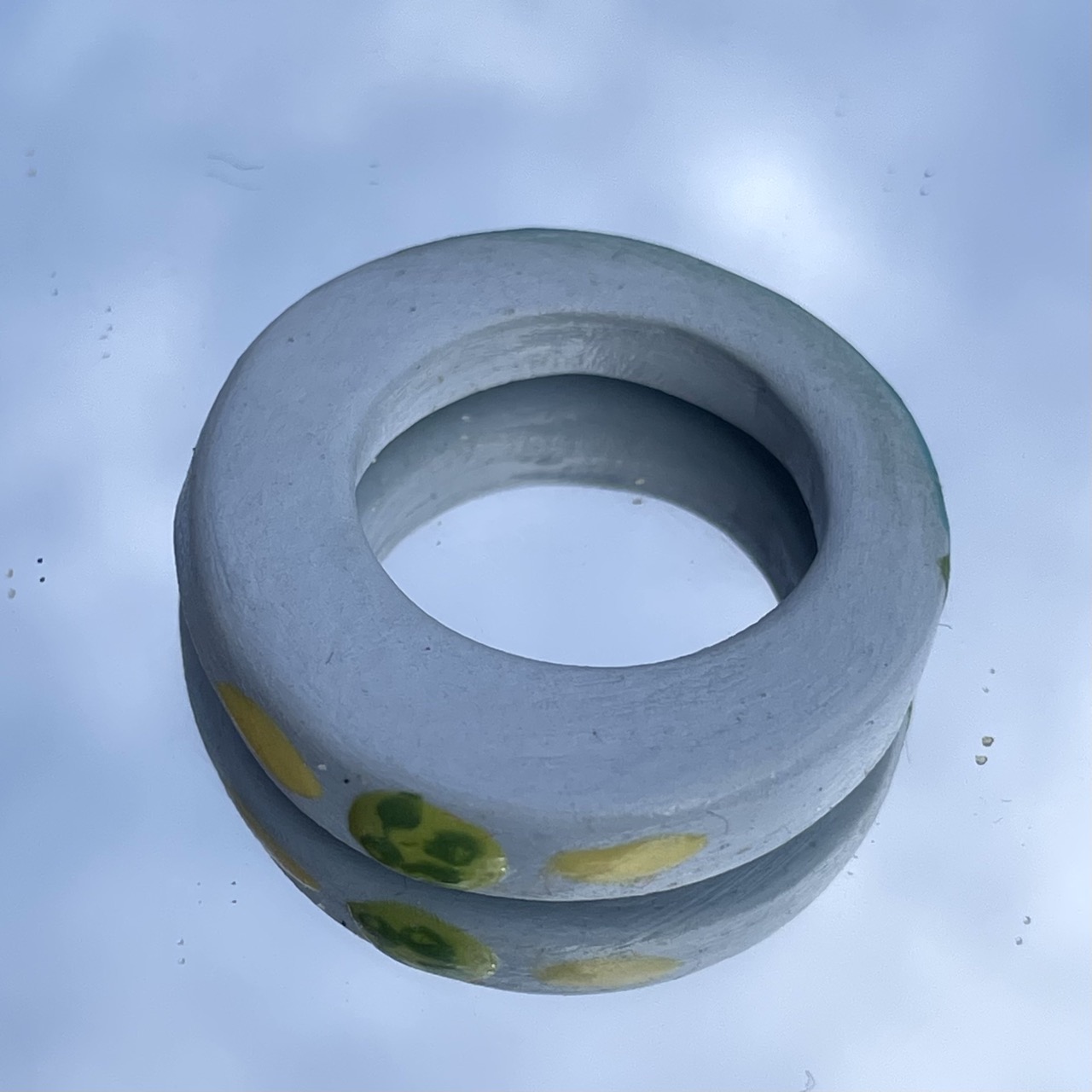Discover the charm of our unique clay rings, handcrafted from high-quality blue earthenware clay and individually handpainted with vibrant glazes. Each ring features a one-of-a-kind design, inspired by the beauty of nature. This ring has two designs so you can turn it round to feature another pattern – two rings in one!