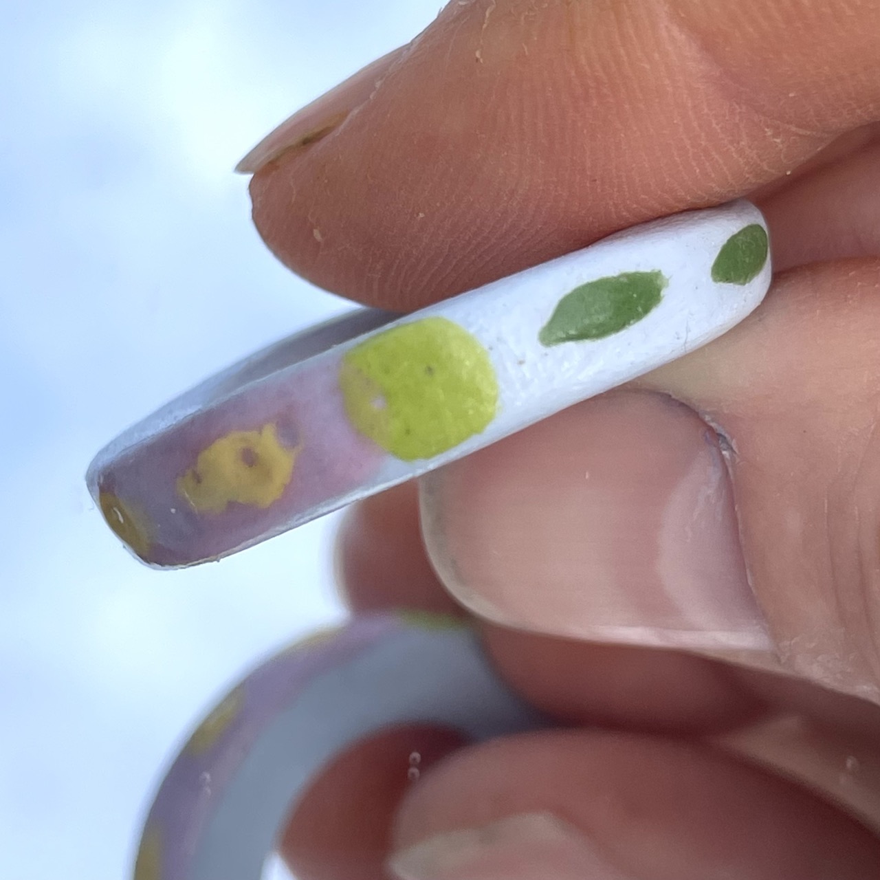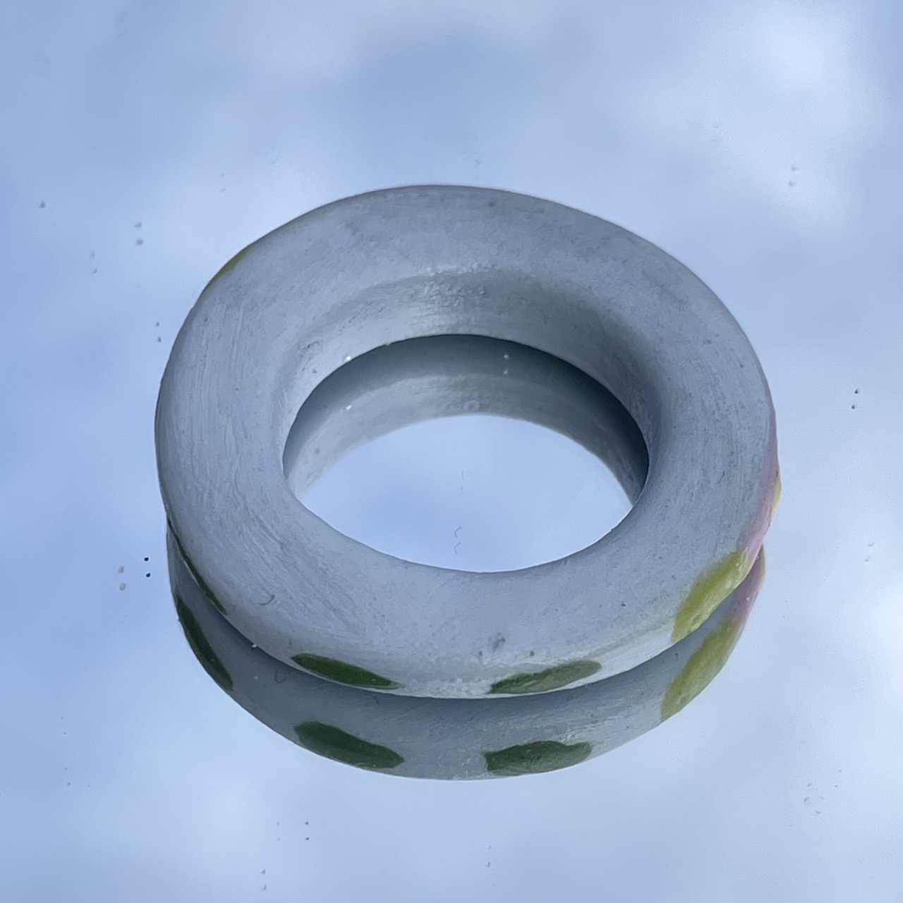 Discover the charm of our unique clay rings, handcrafted from high-quality blue earthenware clay and individually handpainted with vibrant glazes. Each ring features a one-of-a-kind design, inspired by the beauty of nature. This ring has two designs so you can turn it round to feature another pattern – two rings in one!